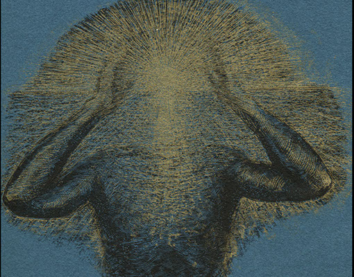 This wood-engraving print by Michael McGarvey “Alarm" is limited to an edition of 98 signed and numbered prints, printed on Handmade Denim Paper in Gold ink.