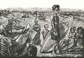 This wood-engraving print by Michael McGarvey “Brigantine” is limited to an edition of 66 signed and numbered prints, printed on White Gampi Paper (51) Mohawk Superifine Paper (15).